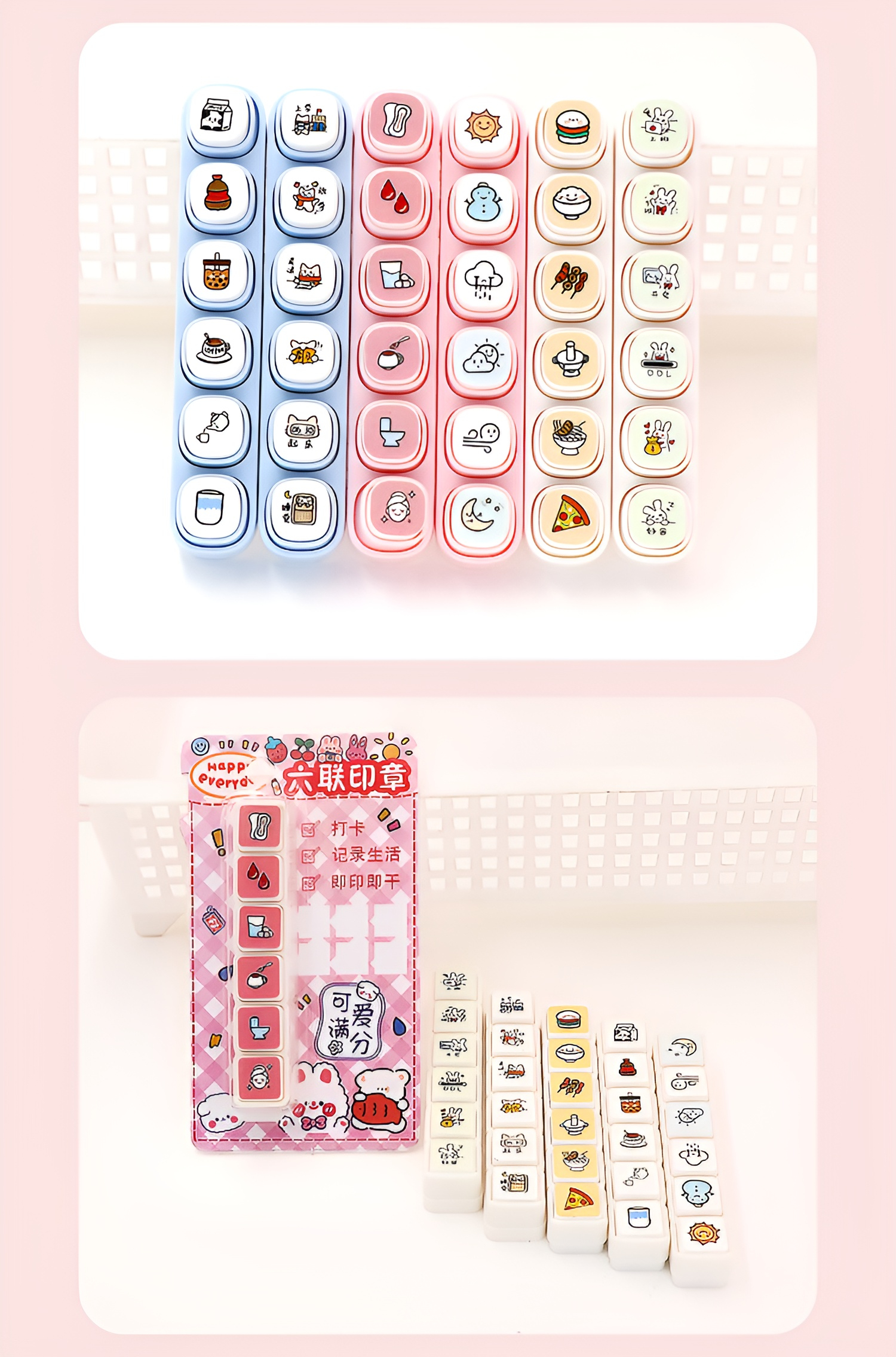Keyboard six-link stamp punch card cute engraved handbook decorative stamp mini press 6-link stamp D